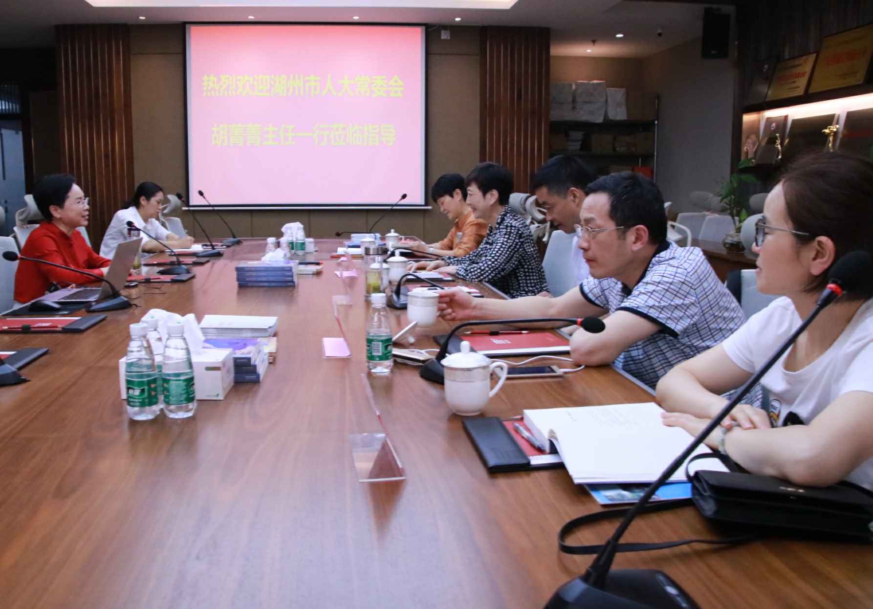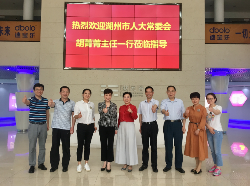 4月26日,湖州市人大常委会胡菁菁主任一行莅临长沙志强家庭娱乐活动有限公司总部考察指导,集团董事长、广东省湖州商会会长官金仙热情接待了胡主任一行。